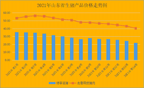 第14周(4月5日-4月11日),活猪价格继续向下探底,连续5周走低。据对全省26个集贸市场价格定点监测,截止第14周末全省生猪出栏均价为21.93元/公斤,同比降低34.12%,环比回落10.20%;全省猪肉价格连续7周走低,本周均价为40.36元/公斤,同比降低29.71%,环比回落6.44%;生猪配合料价格为3.41元/公斤,环比降低0.58%。
