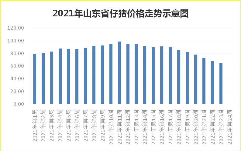 6月市场补栏低迷,肉雏鸡价格持续回落。截至第23周末,我省肉雏鸡均价为3.68元/羽,同比升高77.78%,环比回落11.54%,其中最高价地区是即墨区为6.80元/羽,最低区域价格聊城莘县0.65元/羽。由于高成本下养殖利润缩窄,补栏积极性减弱,预计6月份肉雏鸡价格受夏季天热影响偏弱运行的几率略大。