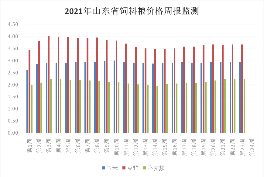 第22-23周,玉米价格探高,豆粕价格高位企稳。截止23周末,玉米价格为2.95元/公斤,同比升高35.94%,环比上涨0.34%;豆粕价格走高后企稳,为3.67元/公斤,同比升高21.93%,环比持平;小麦麸继续升高,为2.26元/公斤,同比升高48.68%,环比升高0.89%;进口鱼粉价格为13.16元/公斤,同比降低7.32%,环比回升0.46%。第22-23周,我省主要畜禽配合料呈现高位震荡态势。截止第23周,育肥猪配合饲料价格为3.51元/公斤,同比升高22.30%,环比回升0.57%;肉鸡配合料价格回落后再升高为3.65元/公斤,同比升高16.61%,环比升高0.55%;蛋鸡配合饲料继22周走低后再回升,为3.18元/公斤,同比升高23.26%,环比升高0.63%。
