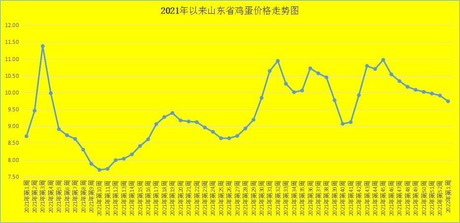 新年第一周我省鸡蛋价格延续回落态势,弱势下行探底。第1周,我省鸡蛋销售平均价格为9.74元/公斤,同比升高11.95%,环比回落1.72%。就全省监测的26个价格县来看,目前我省最高价为10.00元/公斤,最低价为9.30元/公斤,蛋鸡配合料价格与上周相比降低0.31%。蛋雏鸡价格稳中向上,第1周为3.18元/只,同比升高12.77%,环比升高0.63%。