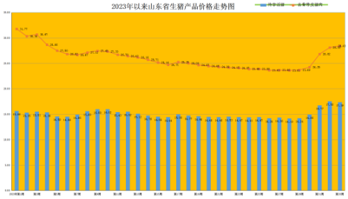 第33周,仔猪价格震荡回升。本周我省仔猪销售均价为34.34元/公斤,同比降低28.68%,环比回升0.18%。