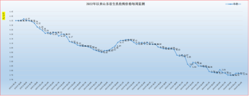 第33周(8月14日-8月20日),我省生乳价格继上周低位企稳后,本周承压小幅回落。第33周我省生乳均价为3.76元/公斤,同比降低6.00%,环比回落0.27%。在我省监测的26个县中,剔除3个无效数据,有7个县的价格大于或等于全省平均价格,有16个县的生乳价格低于全省平均价格。其中最高价格在蓬莱市,为5.00元/公斤;最低价格出现在宁阳县为3.00元/公斤,最高价与最低价差值为2.00元/公斤,差价与上周持平。蓬莱市牧场采取自产自销的奶吧模式,生乳价格保持高位;宁阳受奶源销售影响,价格低位向下。
